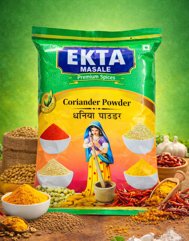 Processed under strict hygienic conditions, Ekta Masale guarantees purity, freshness, and premium quality in every pack. Whether for daily meals or special dishes, this coriander powder is a must-have in your kitchen.