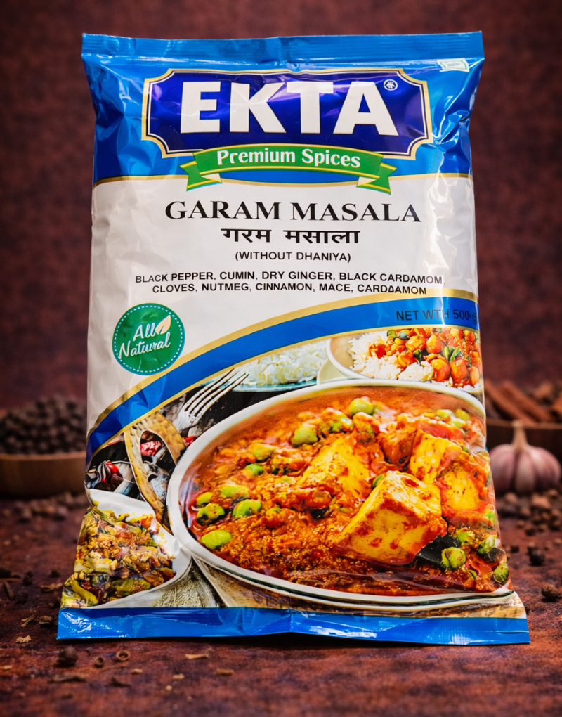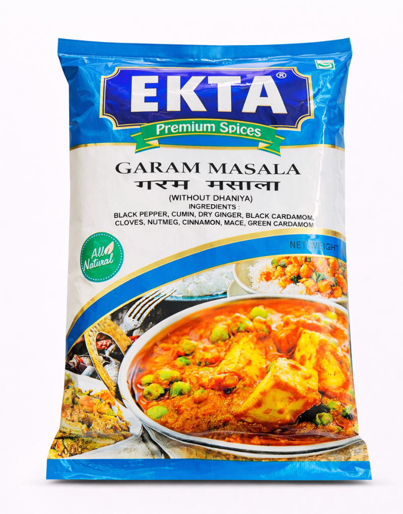 Ekta Premium Garam Masala is a rich and aromatic blend of traditional Indian spices, specially crafted to enhance the flavor and aroma of your dishes. This variant is made without coriander (dhaniya), making it unique and ideal for recipes that require a strong, warm spice profile.