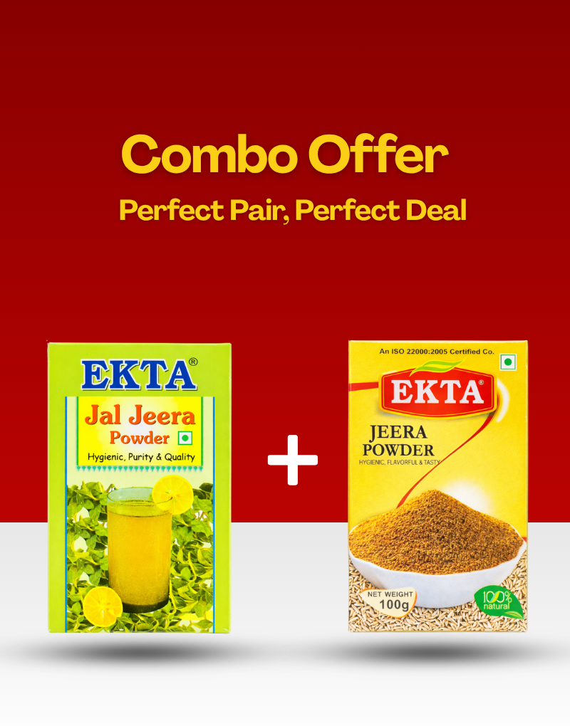 Enjoy the perfect balance of flavor and refreshment with our Jeera Powder + Jaljeera Powder Combo Pack (100gm each).